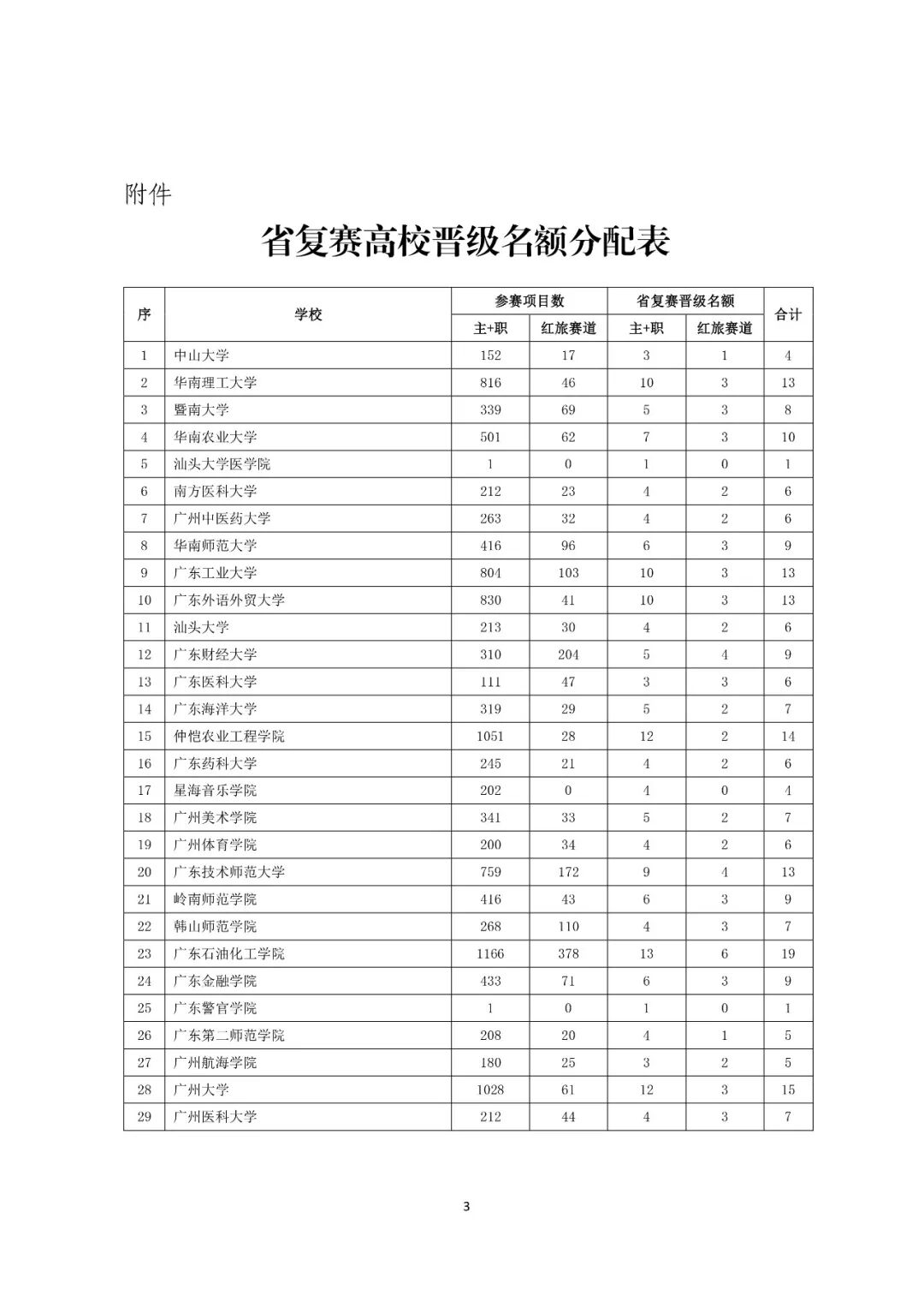 按省复赛晋级名额的规则(详见粤教毕函〔2019〕34号),根据各高校报名人数与作品提交数量的情况,经组委会研究,决定149所省内普通高校共1291个名额晋级省复赛。其中,高教主赛道与职教赛道合计968个,“青年红色筑梦之旅”赛道323个。
